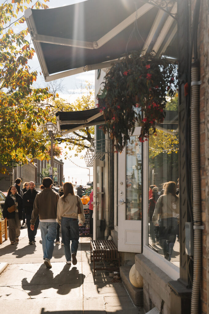 Découvrez les boutiques, restaurants, et laissez-vous émerveiller par les éléments de décor carnavalesque, réalisés à la main ou chinés par Mario Label, un artisan de l'île d'Orléans.