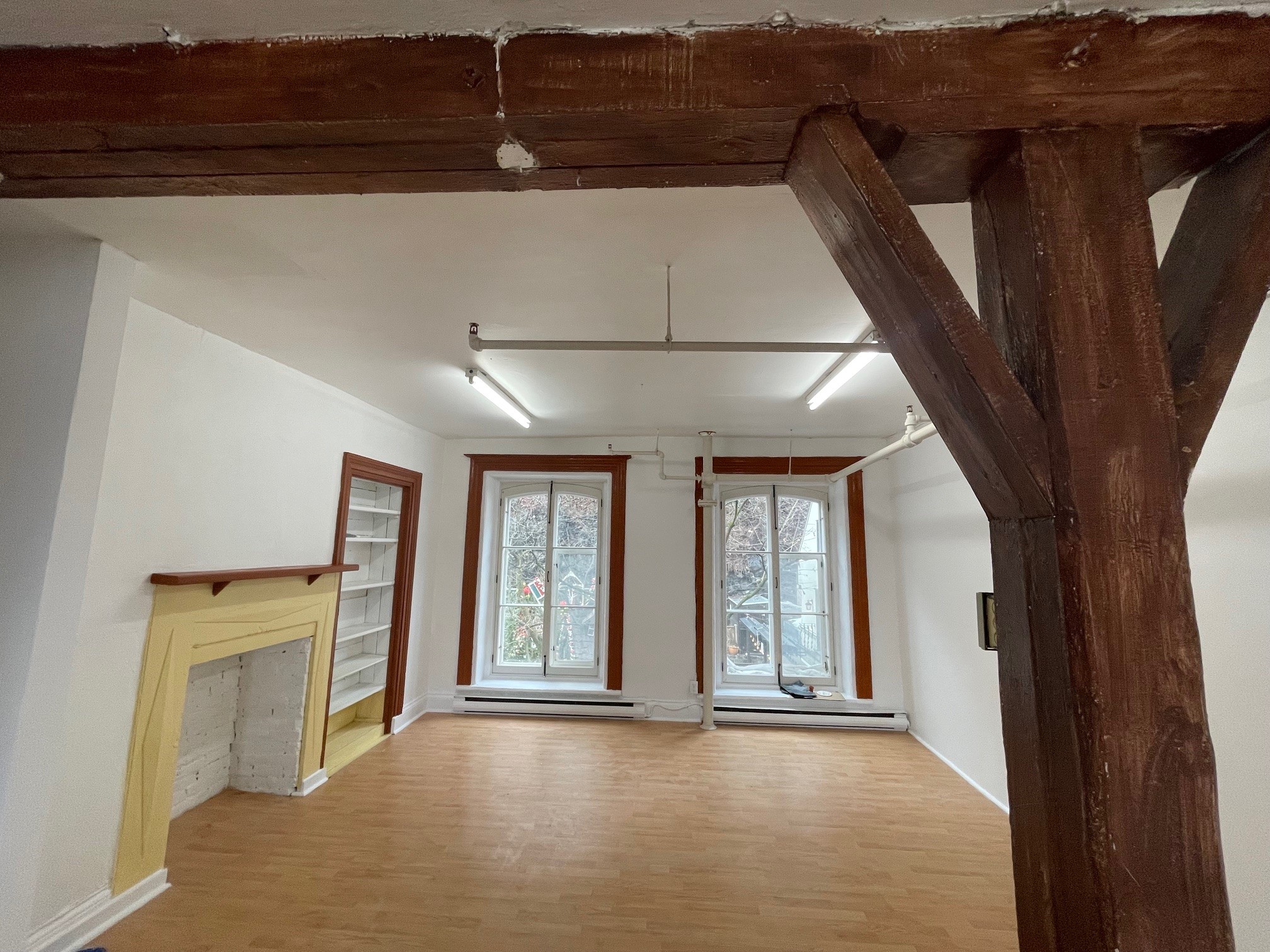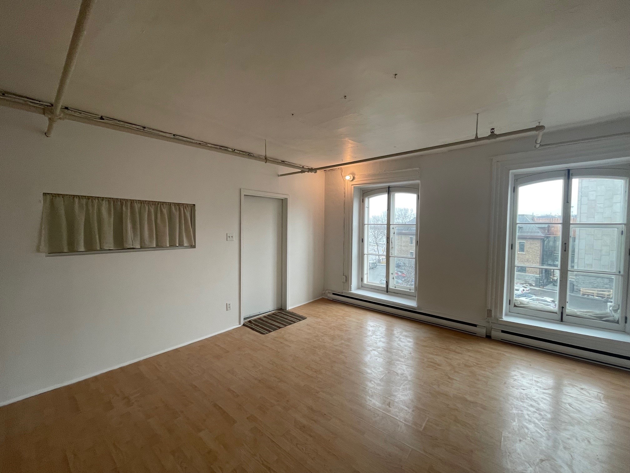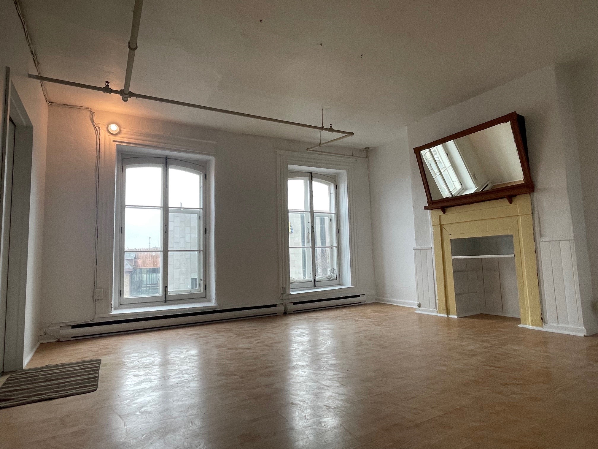 Fenestration des deux côtés du local. Une vue sur le fleuve, l'autre vue directement sur la rue du Petit-Champlain.